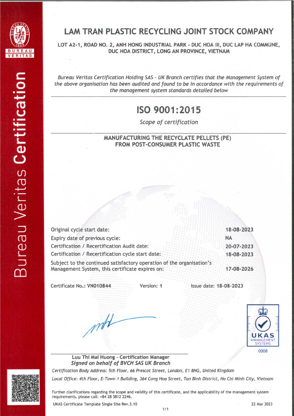 Các sản phẩm và quy trình của chúng tôi được kiểm chứng bởi các cơ quan độc lập và được chứng nhận đạt tiêu chuẩn ISO 9001:2015. Vì vậy, chúng tôi có thể cung cấp cho khách hàng những sản phẩm và dịch vụ có chất lượng cao